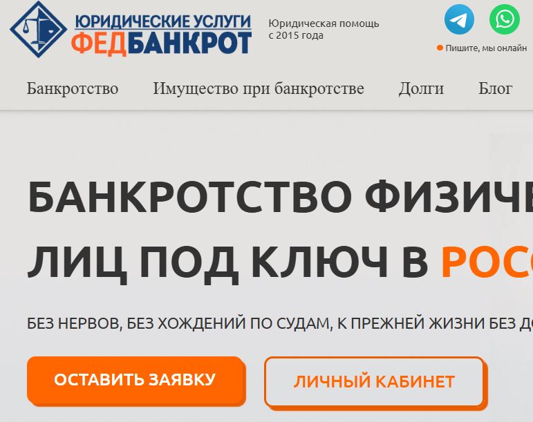 Информационное приложение, ведущее к заказу услуг юридической помощи в банкротстве
